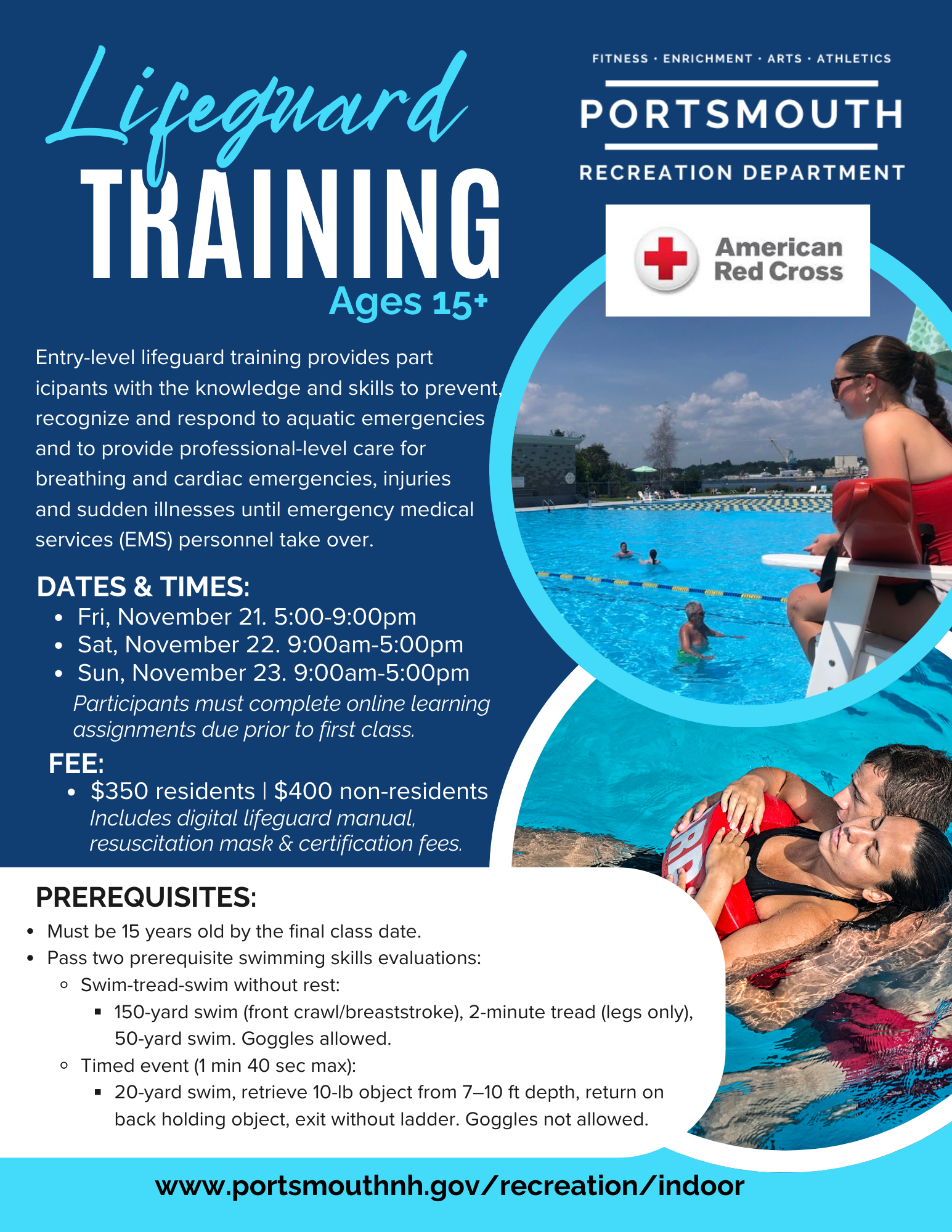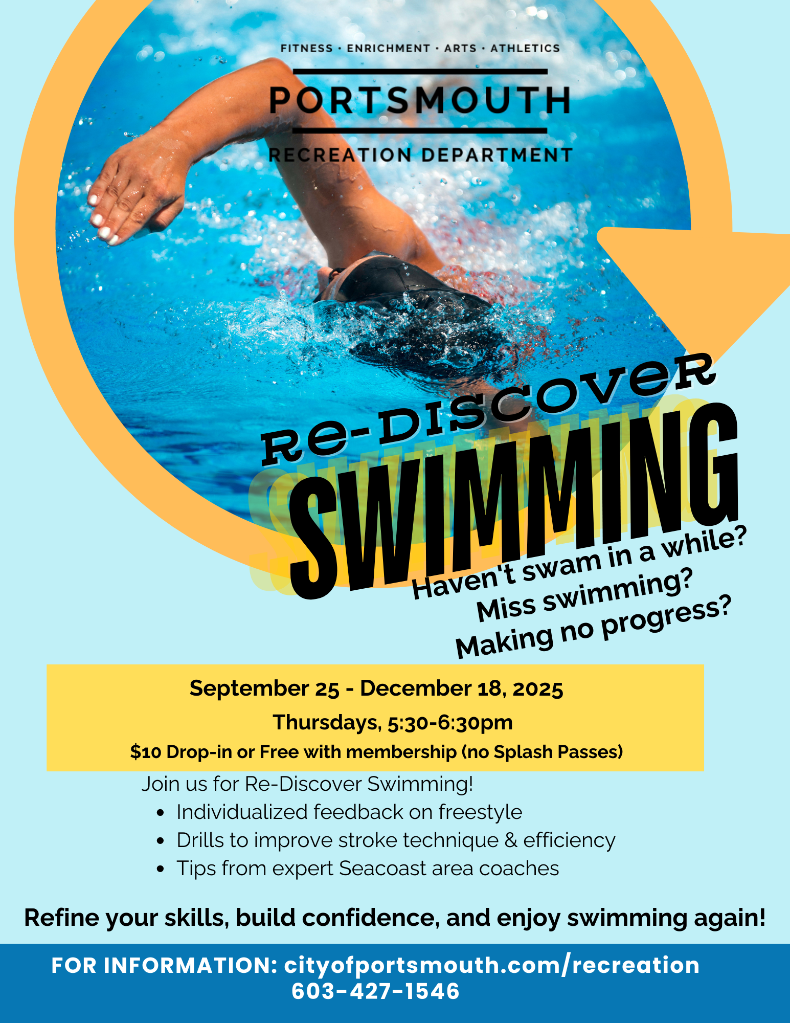 Location: Portsmouth Indoor Pool. Free with pool membership or $10 drop-in (No Splash Passes)