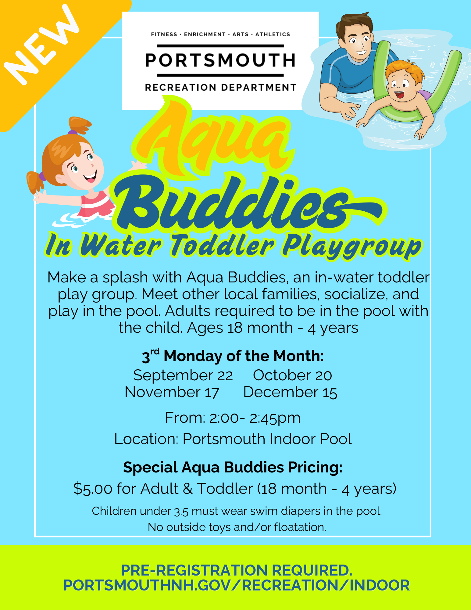 Location: Portsmouth Indoor Pool. $5 per class (includes both adult and toddler)