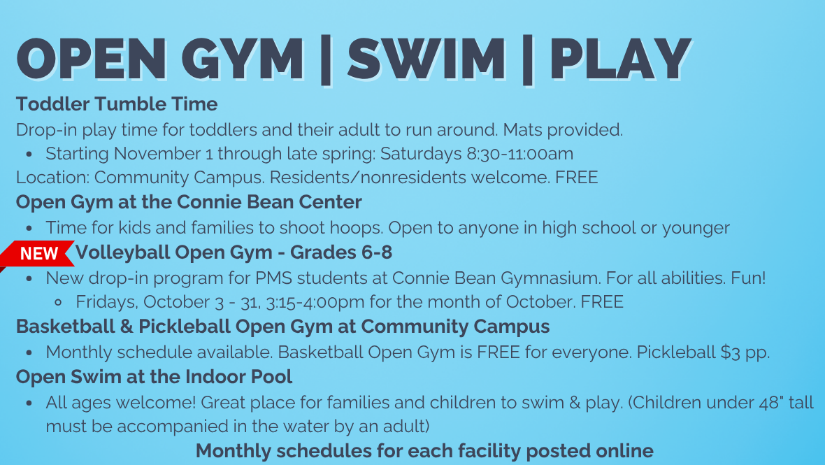 Location: Connie Bean Gym. Residents $10 | Nonresidents $15