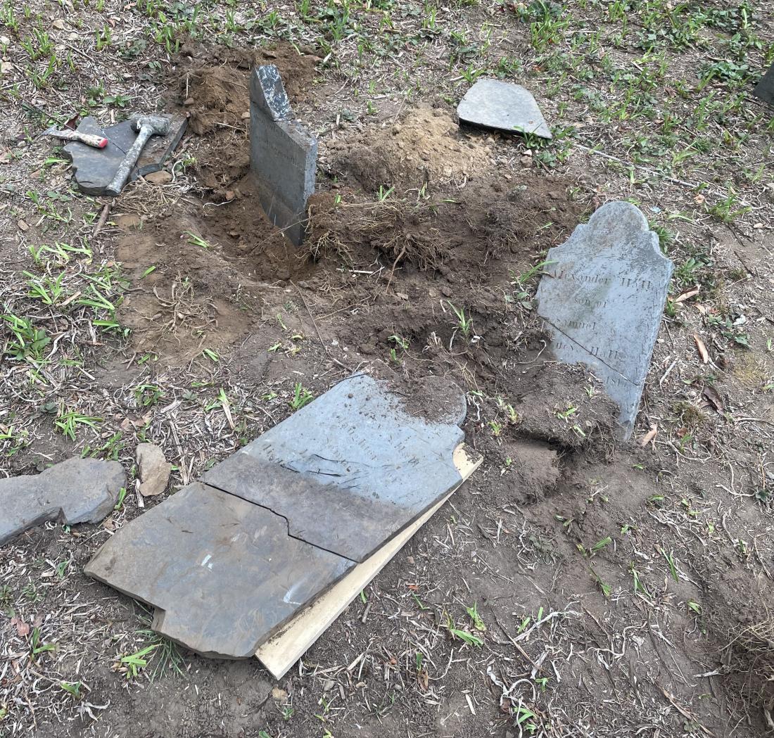 Cotton Cemetery children's stones before repair