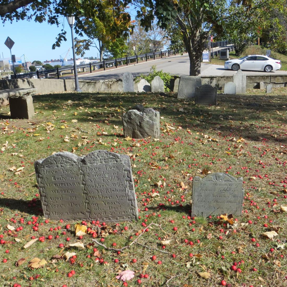The City's oldest burying ground, established in 1671 on land deeded to the town by Capt. John Pickering. Located on Mechanic Street next to the Prescott Park seasonal garden and overlooking the Piscataqua River. No gravestones survived previous to 1682 because Capt. Pickering's cattle were allowed to continue grazing among the gravestones after the burying ground was established.