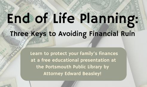 Attorney Edward Beasley will discuss how to protect against the potentially catastrophic effects of a nursing-home stay; safeguarding trusts from nursing-home costs; shielding inheritance funds from outside creditors and divorcing spouses of adult children; avoiding the costly and public probate process; and more. The presentation is highly engaging and conversational in nature.