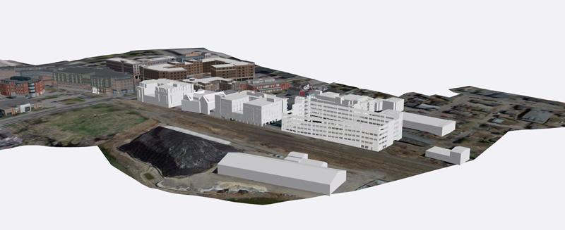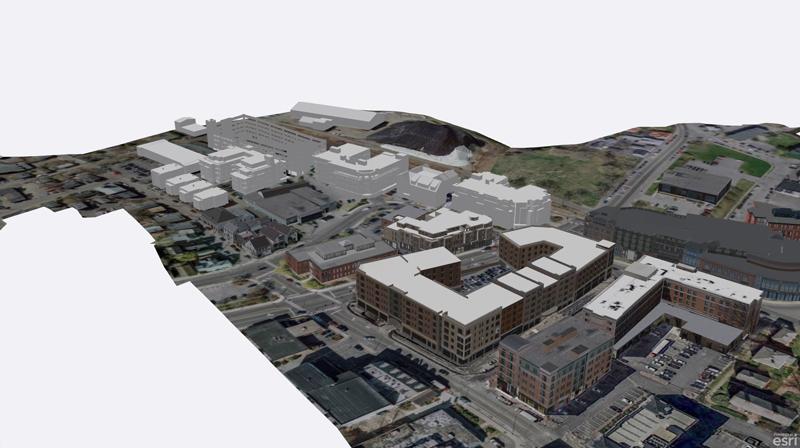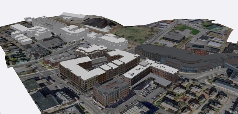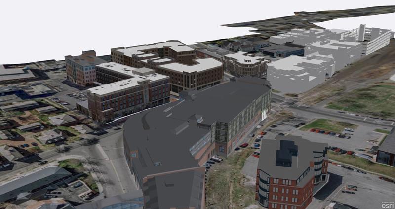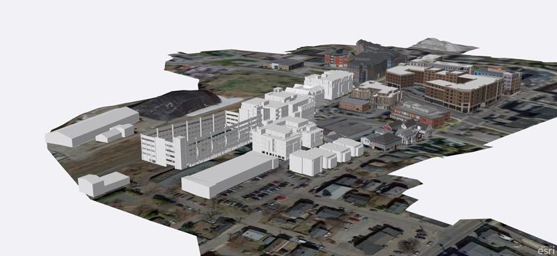 Using the City’s 3-D Massing Model to Visualize the Future Buildings and Streetscape along Deer and Bridge Streets.*