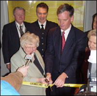 2003 December 12th - At a cost of 1.5 million dollars, the Police Department completely updates the emergency communications equipment. A new Dispatch Center along with all new portable radio's are changed from analog to digital transmissions greatly increasing the communication ability of emergency personnel. It will soon be possible to speak with every police department, fire department and other emergency services in New Hampshire directly from the field or the Dispatch Center. The Bureau of Investigative Services offices, part of which were displaced by the new Dispatch Center, were also redone as part of the project, combining the Family Services and General Investigations Sections in one area. The ribbon cutting ceremony for this state of the art communications center is attended by US Senator Judd Gregg who helped to secure most of the critical funding from a Federal Grant.