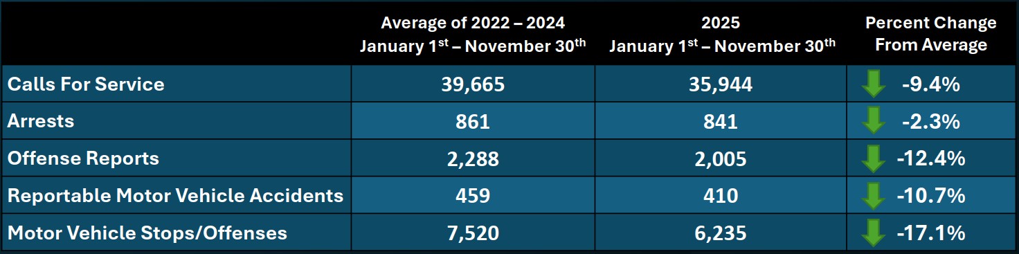 This report was prepared by Casey Graham, Crime Analyst/Patrol Administrative Assistant
