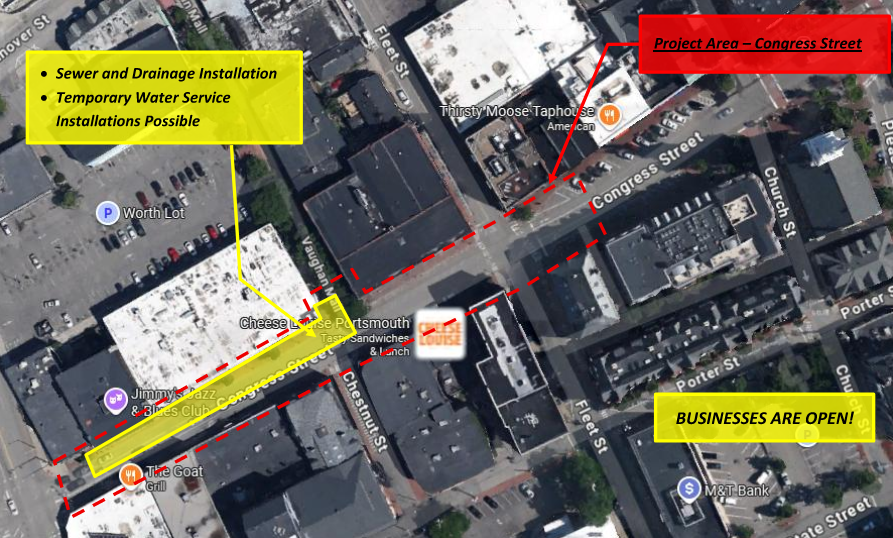 Work includes the full replacement of sewer collection, water distribution, and stormwater infrastructure from Maplewood Avenue to a point approximately 100’ beyond (East) of the Fleet Street intersection. This portion of work will also include the restoration of Congress Street in the fall of 2026 beginning after Labor Day.