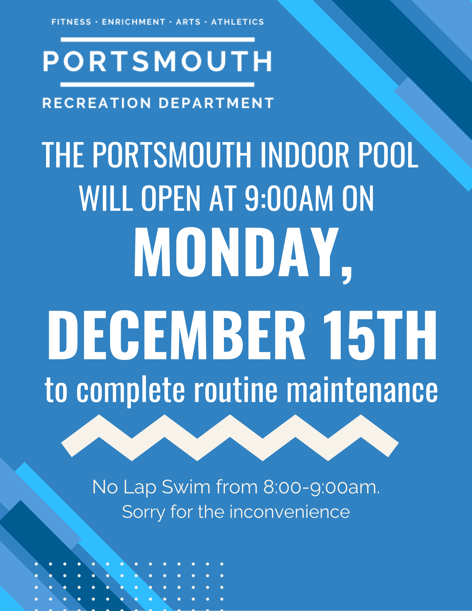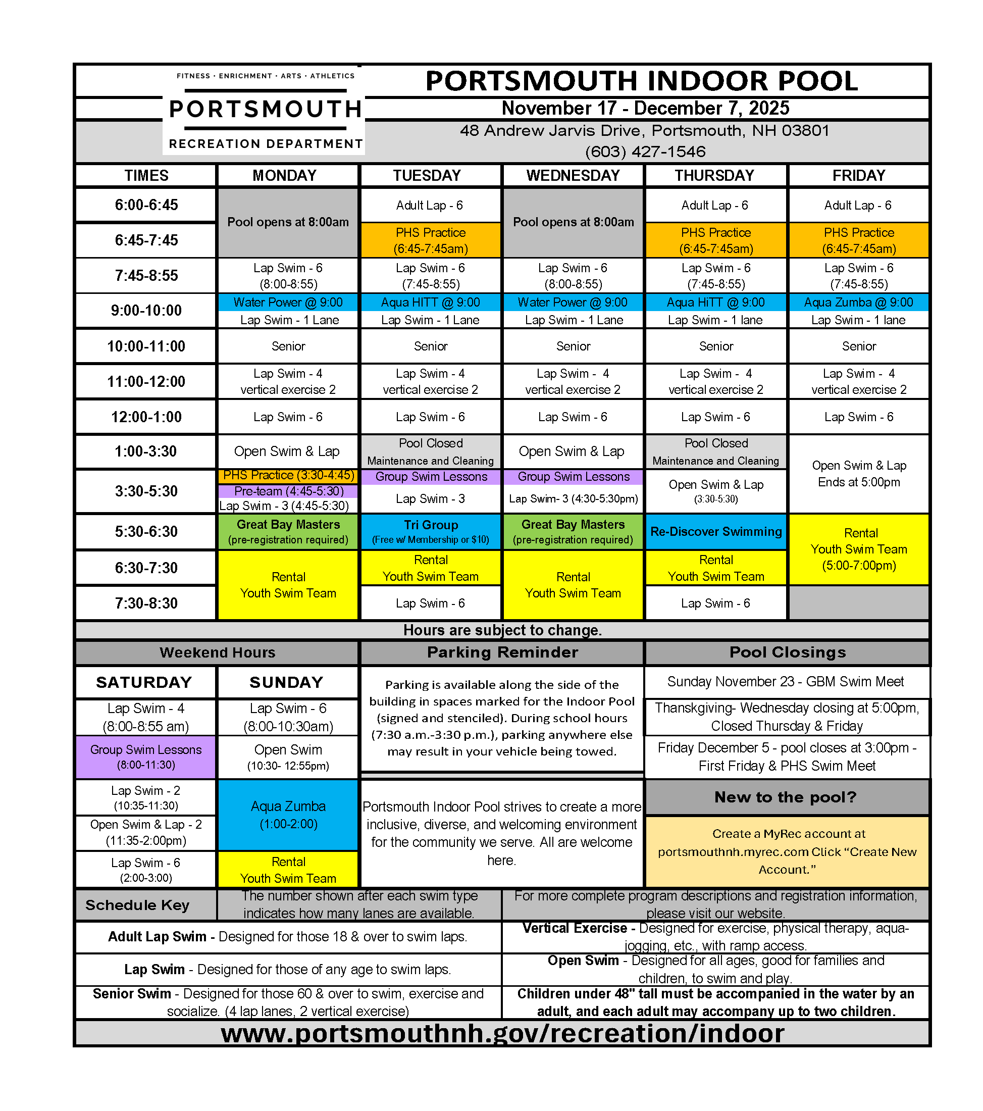 - Saturday, December 13: Portsmouth High School Swim Meet