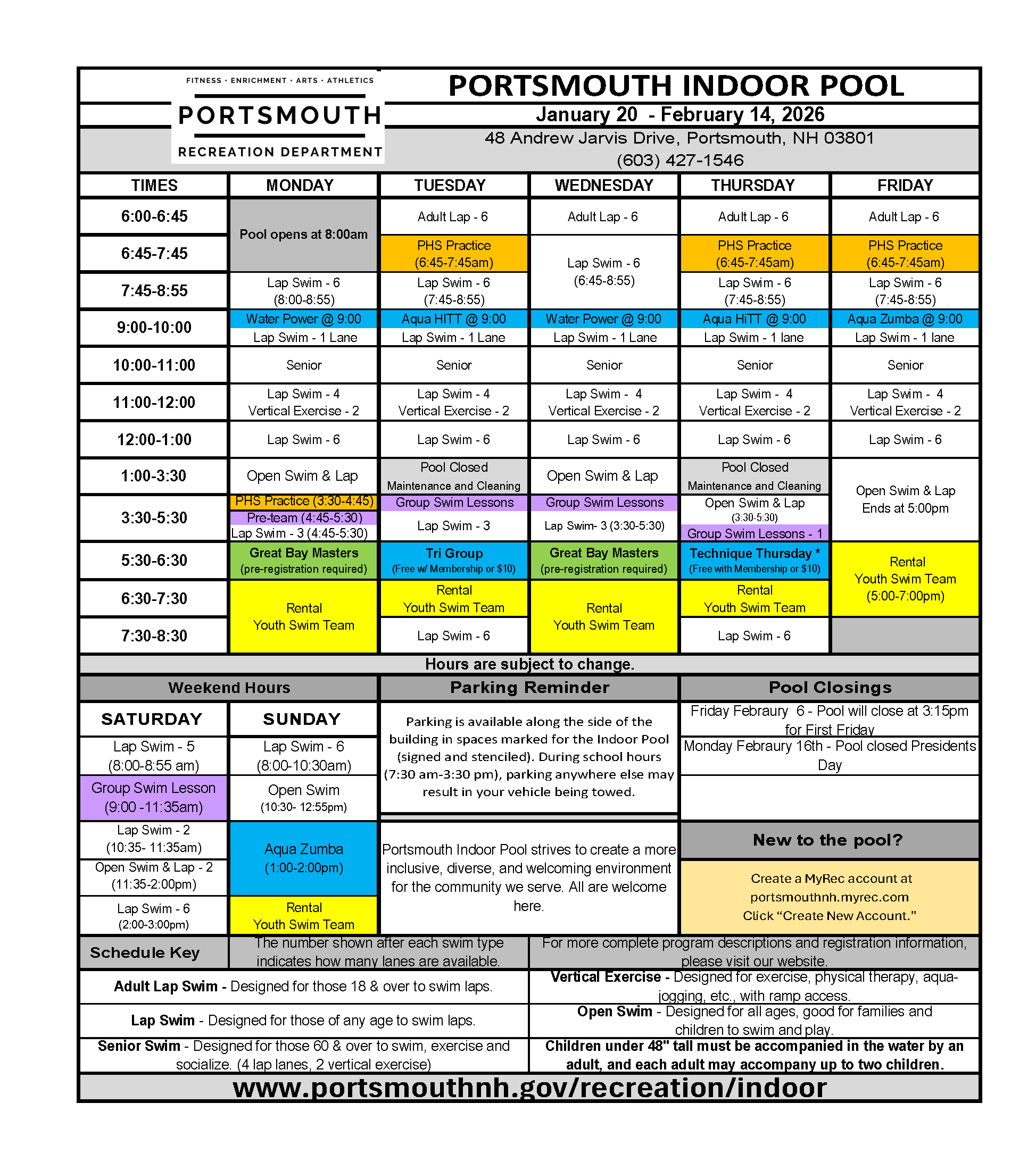 - Friday, February 6: Closing at 3:15pm for First Friday Swim