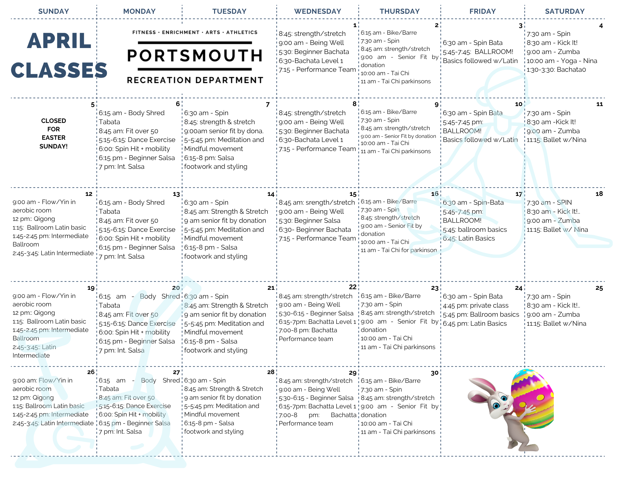 April 2026 Class Schedule