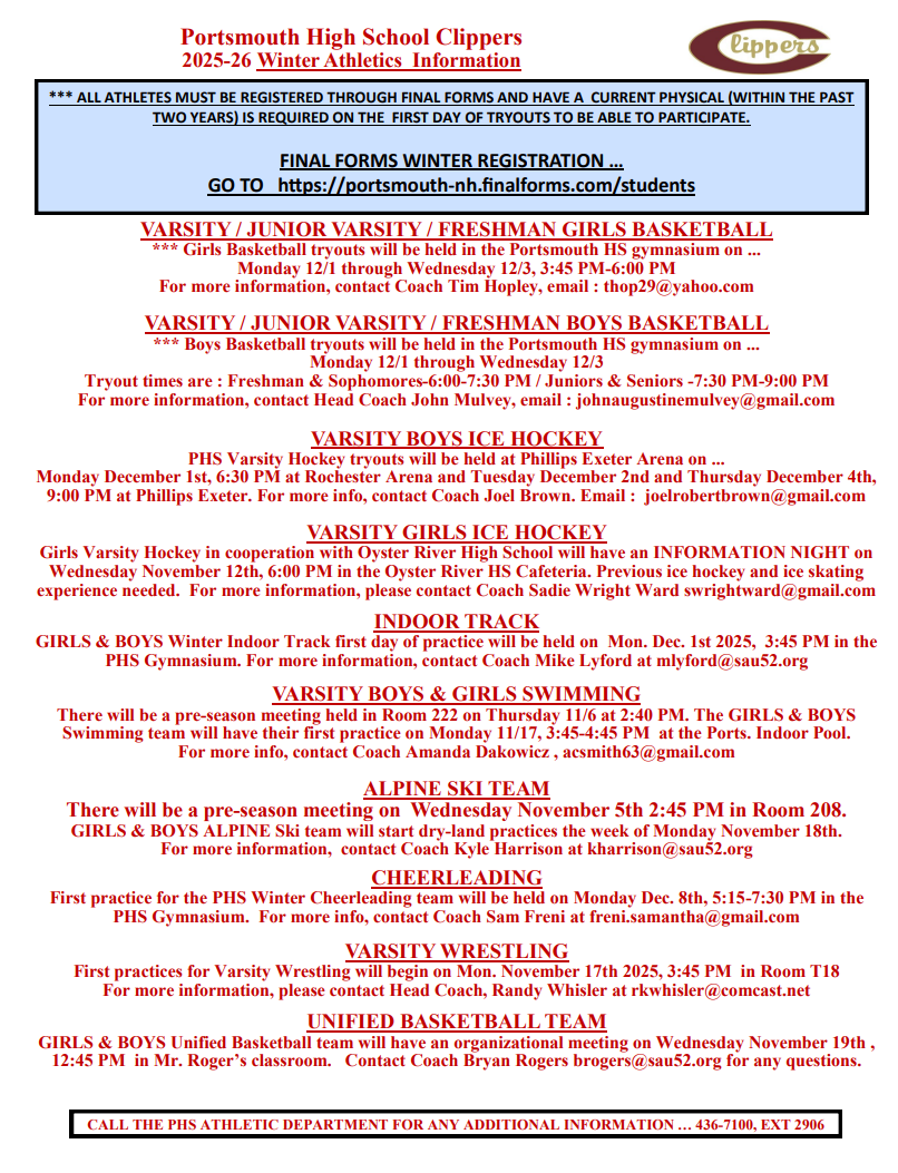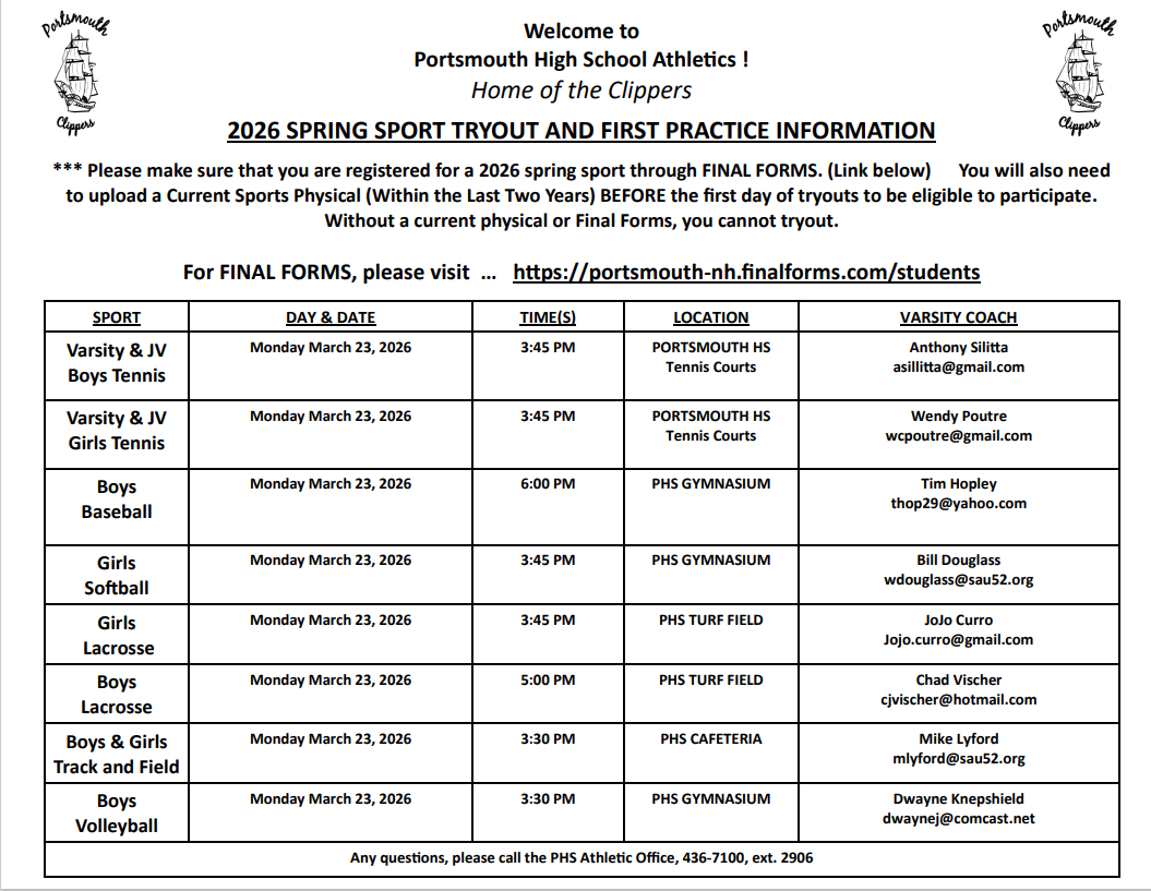 Portsmouth School Board Extra Curricular and Co-Curricular Activities (JJA)